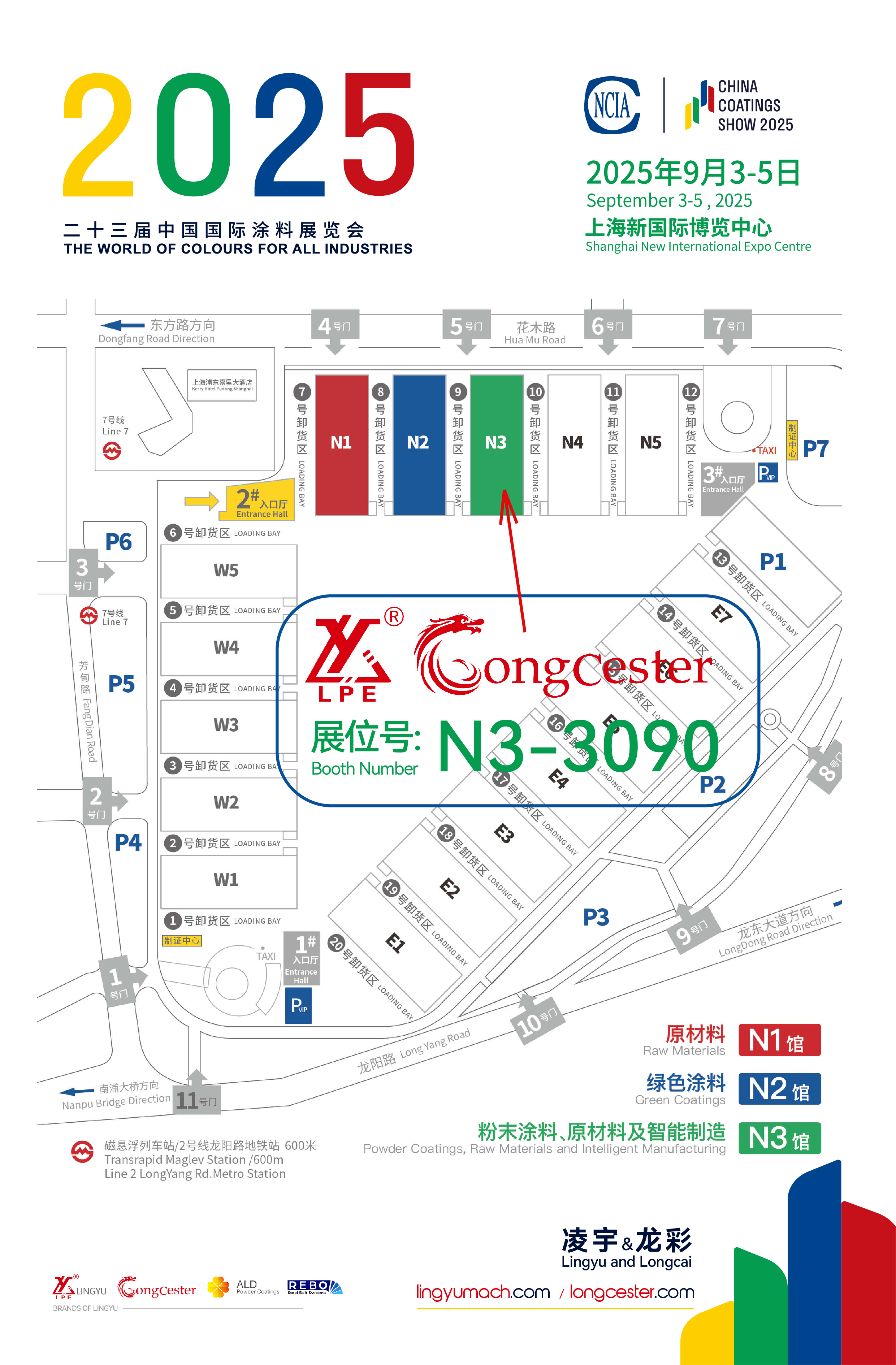 作為中國粉末涂料加工設備及原材料領域的代表性企業,凌宇機械與龍彩新材料將亮相本屆展會,展位號N3-3090。